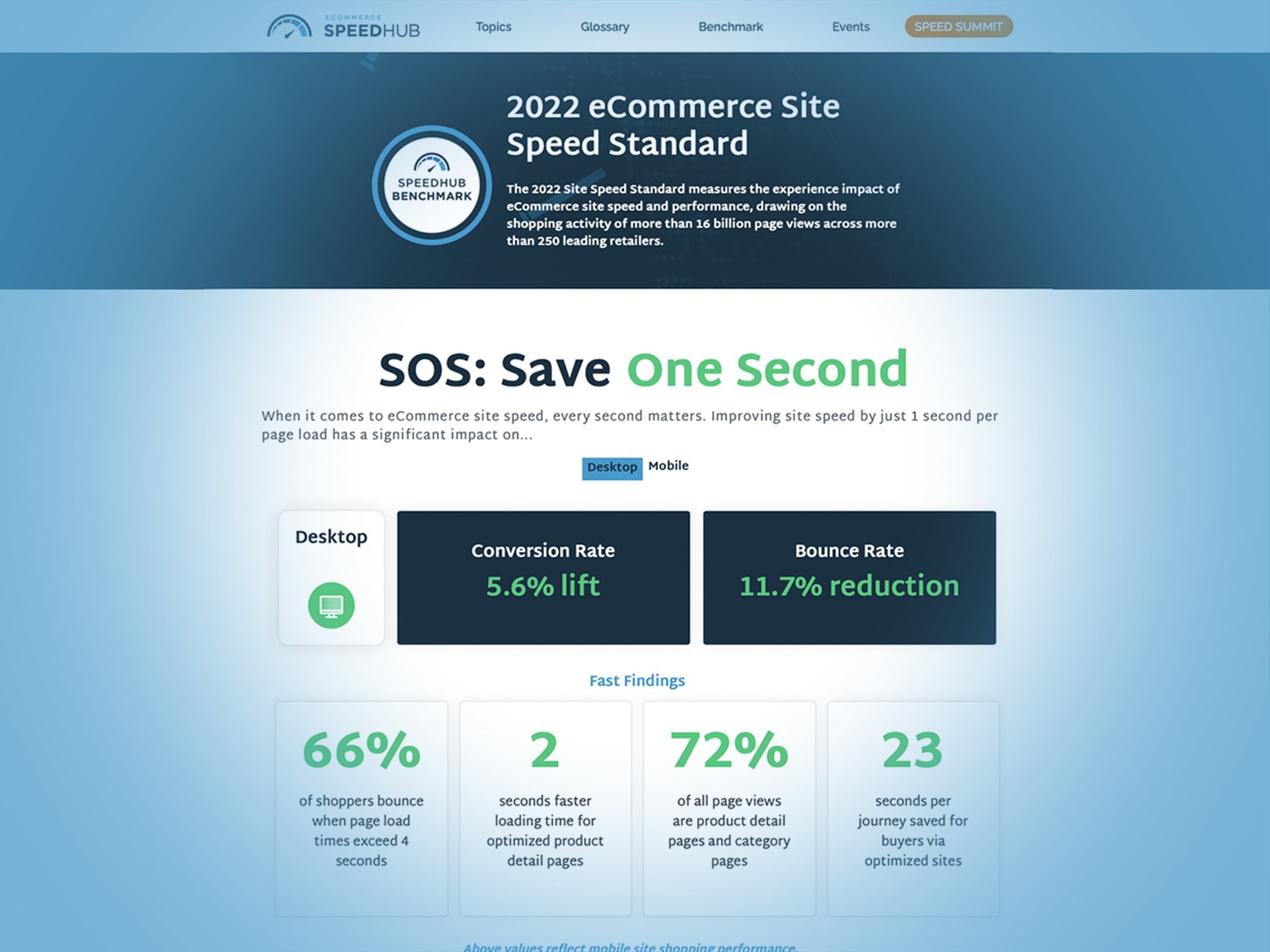 eCommerce professionals are often frustrated by a lack of aggregated online content and community resources around many core foundational topics. The eCommerce SpeedHub’s mission is to provide online retailers with a centralized repository of site performance content so they can learn how performance impacts shopper experience, online conversion, and much more. The SpeedHub covers a wide range of topics focused on eCommerce Digital Experience and includes powerful benchmark data based on over 1,500 eCommerce sites to help brands make educated data backed decisions. Additionally, the eCommerce SpeedHub provides a community portal where retailers can network and learn from each other.